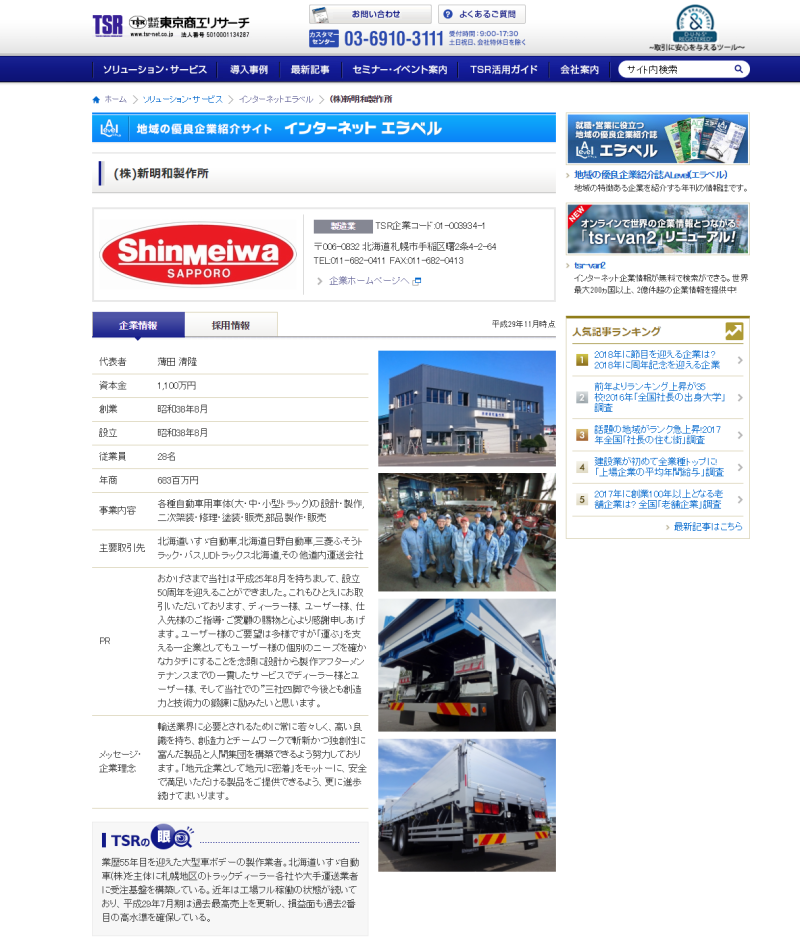 ㈱東京商工リサーチが発行する企業紹介誌『エラベル北海道版2019』に当社が掲載されました。